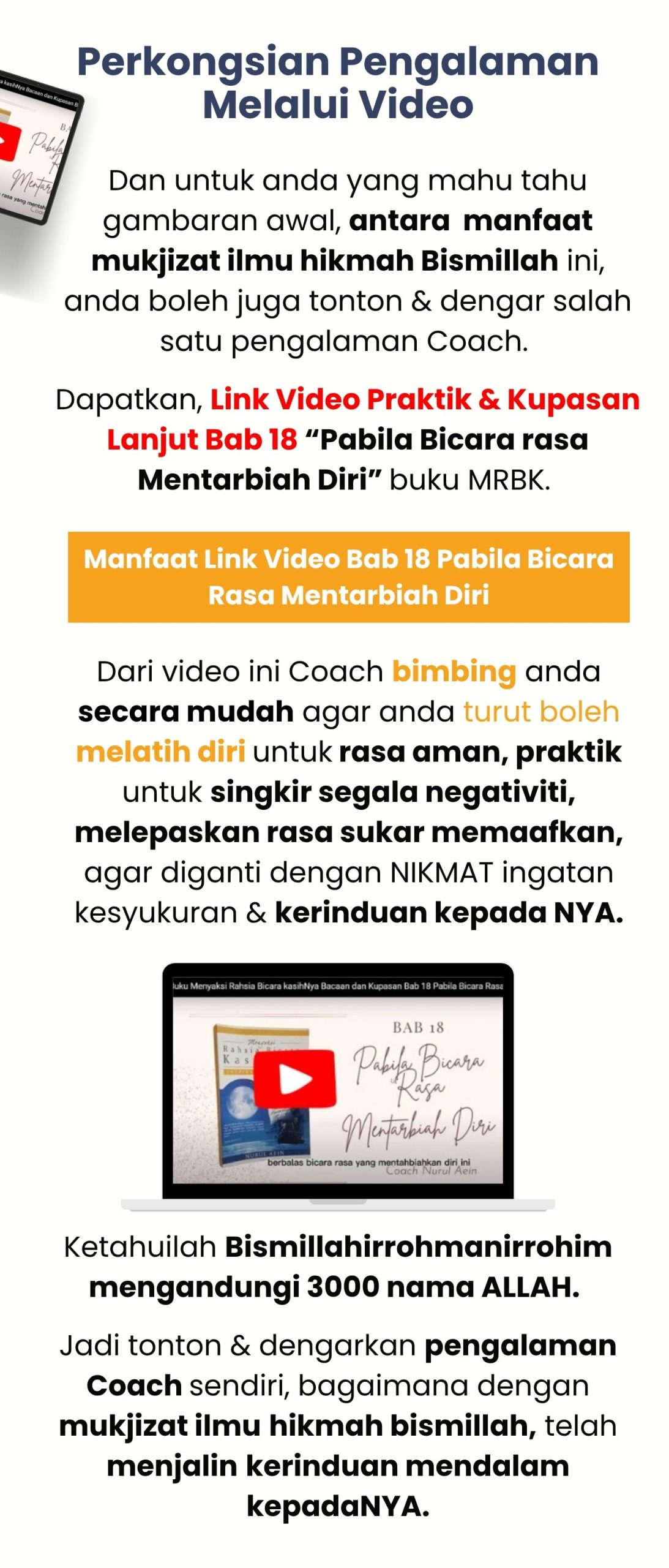 1 LINK Video Kupasan & Perkongsian Praktikal dari Bab 18 “Pabila Bicara Rasa Mentarbiah Diri” untuk anda yang sukar memaafkan & melepaskan “let go” negativiti yang mengganggu JIWA anda.